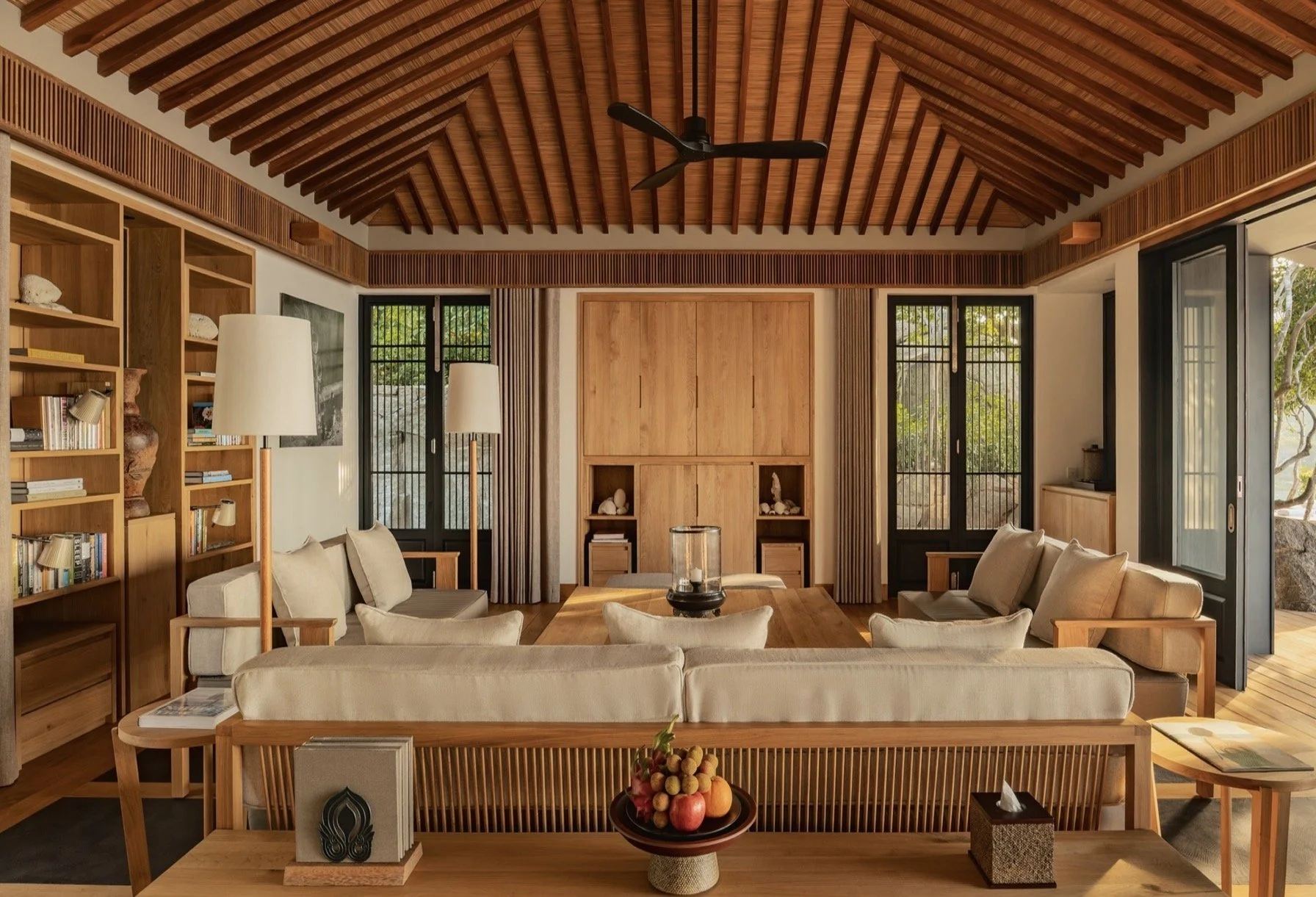 Designed by Jean‑Michel Gathy — the architect behind much of Aman’s signature aesthetic — the nearly 10,000 sq ft residence blends contemporary comfort with subtle camouflage amid its natural setting. The design feels shrine‑like in its restraint, with interiors and outdoor spaces that remain in quiet dialogue with the park’s greenery and the sea beyond.