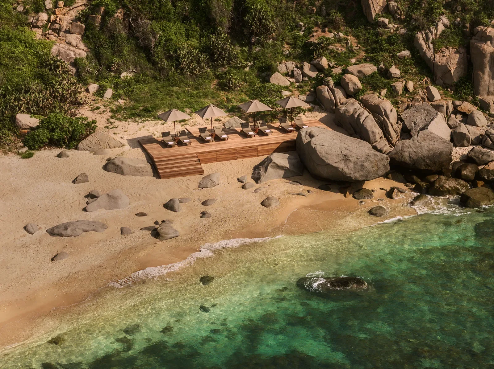 Situé dans une réserve de biosphère classée par l’UNESCO, à une heure de vol au nord‑est de Ho Chi Minh Ville, le site offre un accès exclusif à une plage privée sur la mer de l’Est. Les falaises verdoyantes et le paysage naturel créent un cadre d’une rare beauté, où la mer semble se fondre à l’horizon.