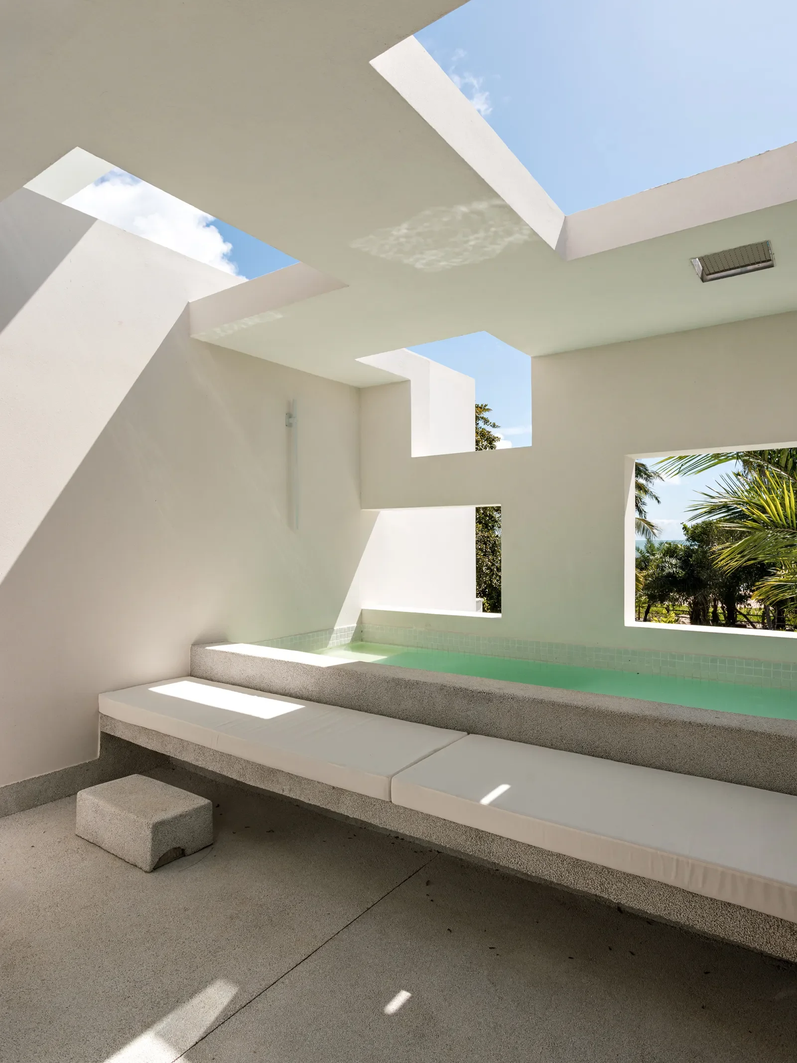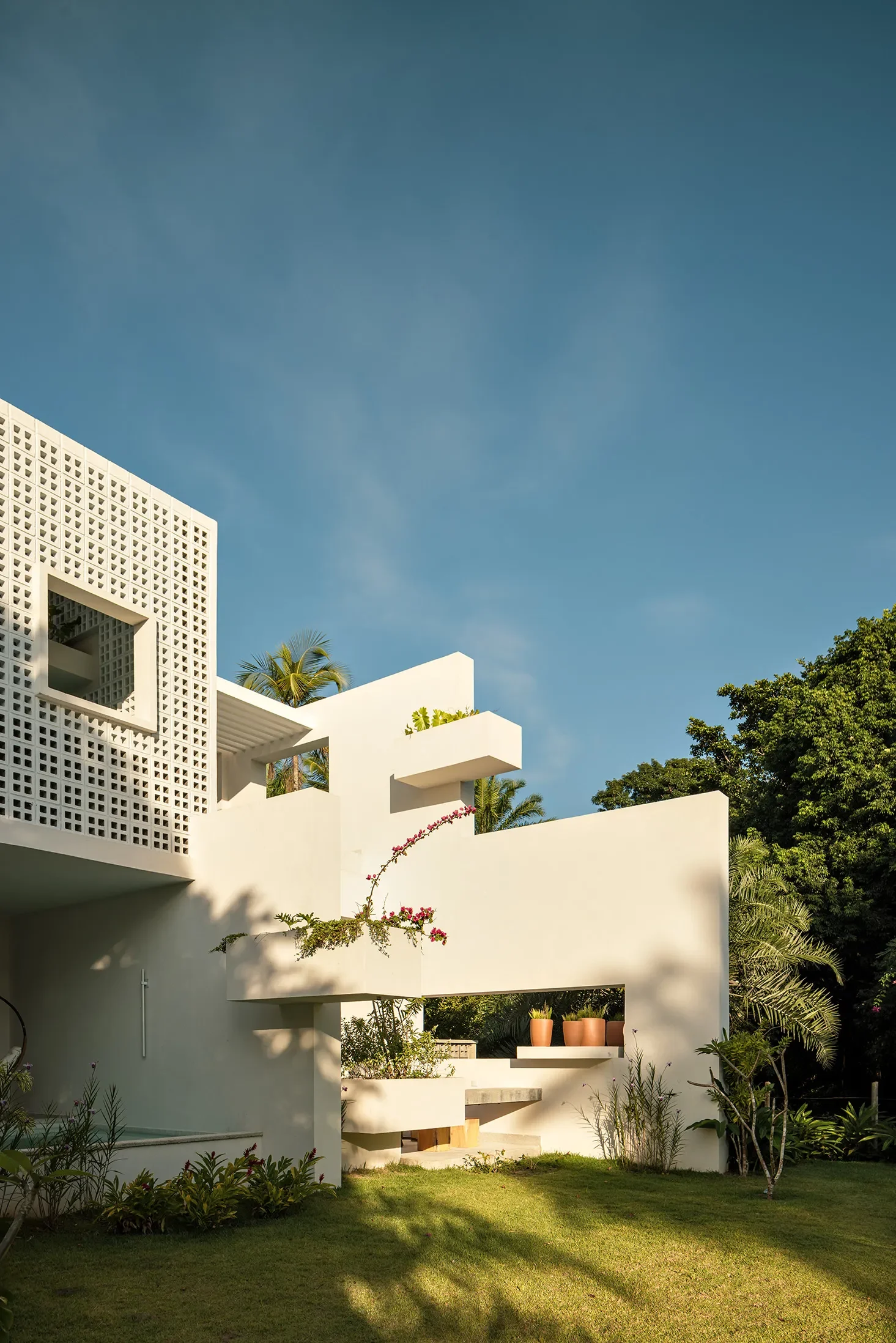 Designed by São Paulo-based studio FGMF, the project carefully integrates 20 suites into the jungle. The architecture plays with repetition and variation: a clean, modernist structure softened by irregular balconies, local materials and elements like cobogó brickwork that filter light and air.