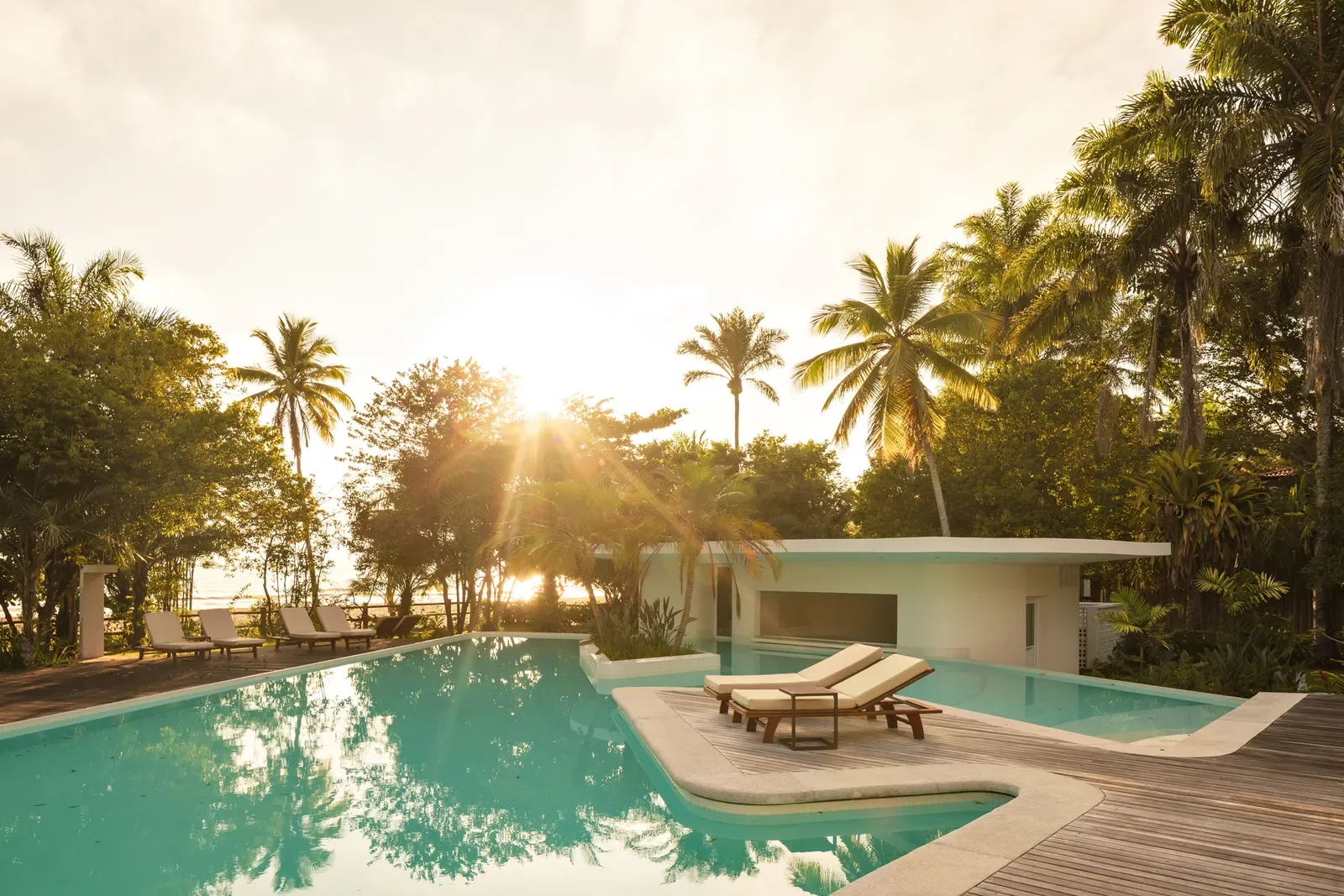 Chaque suite dispose d’une piscine privée, d’une terrasse généreuse et d’une vue sur l’océan. Les configurations varient, offrant une expérience unique à chaque séjour. Les étages supérieurs ouvrent sur des vues dégagées, tandis que les chambres en rez-de-jardin privilégient l’intimité au cœur de la végétation.