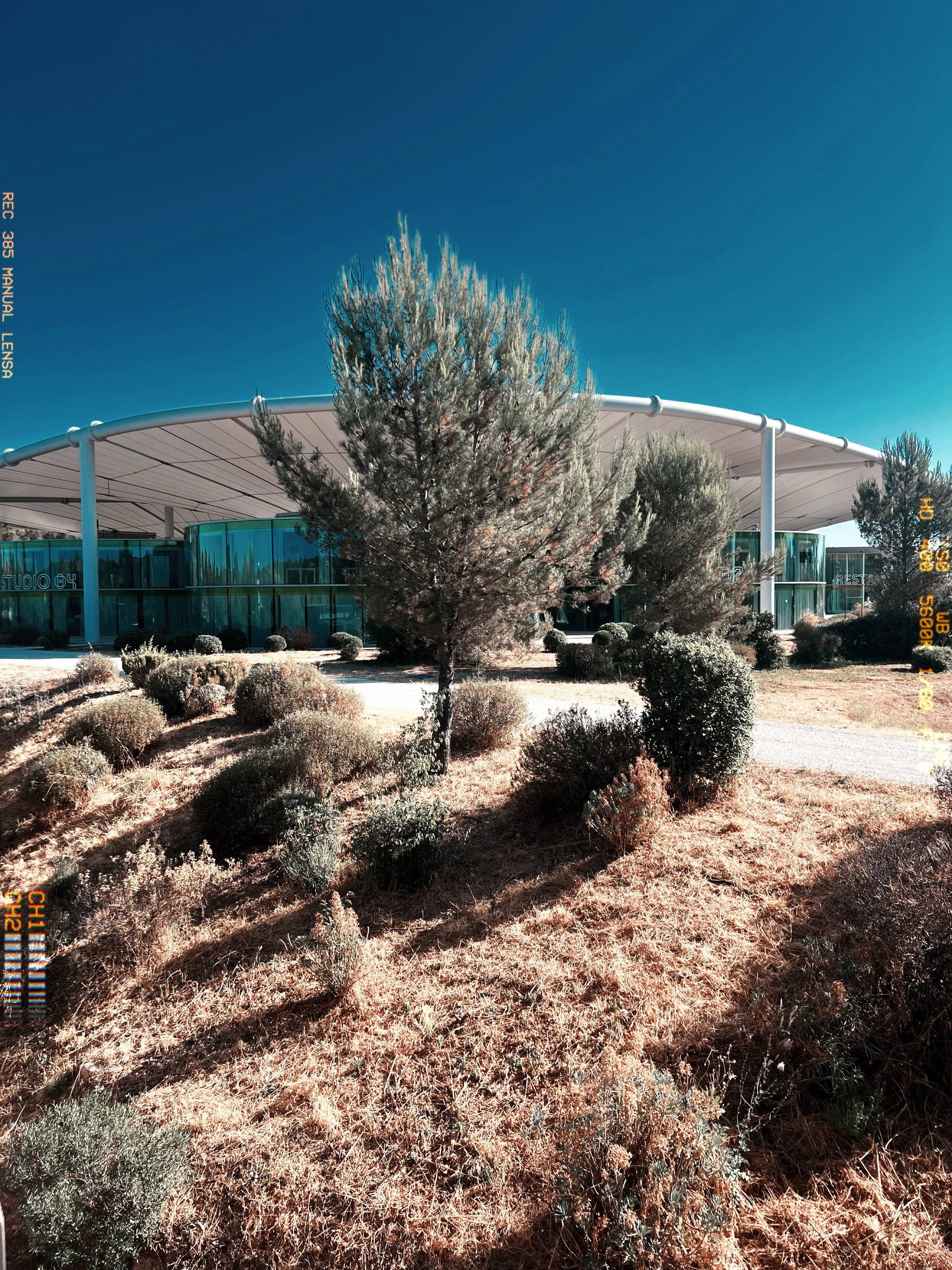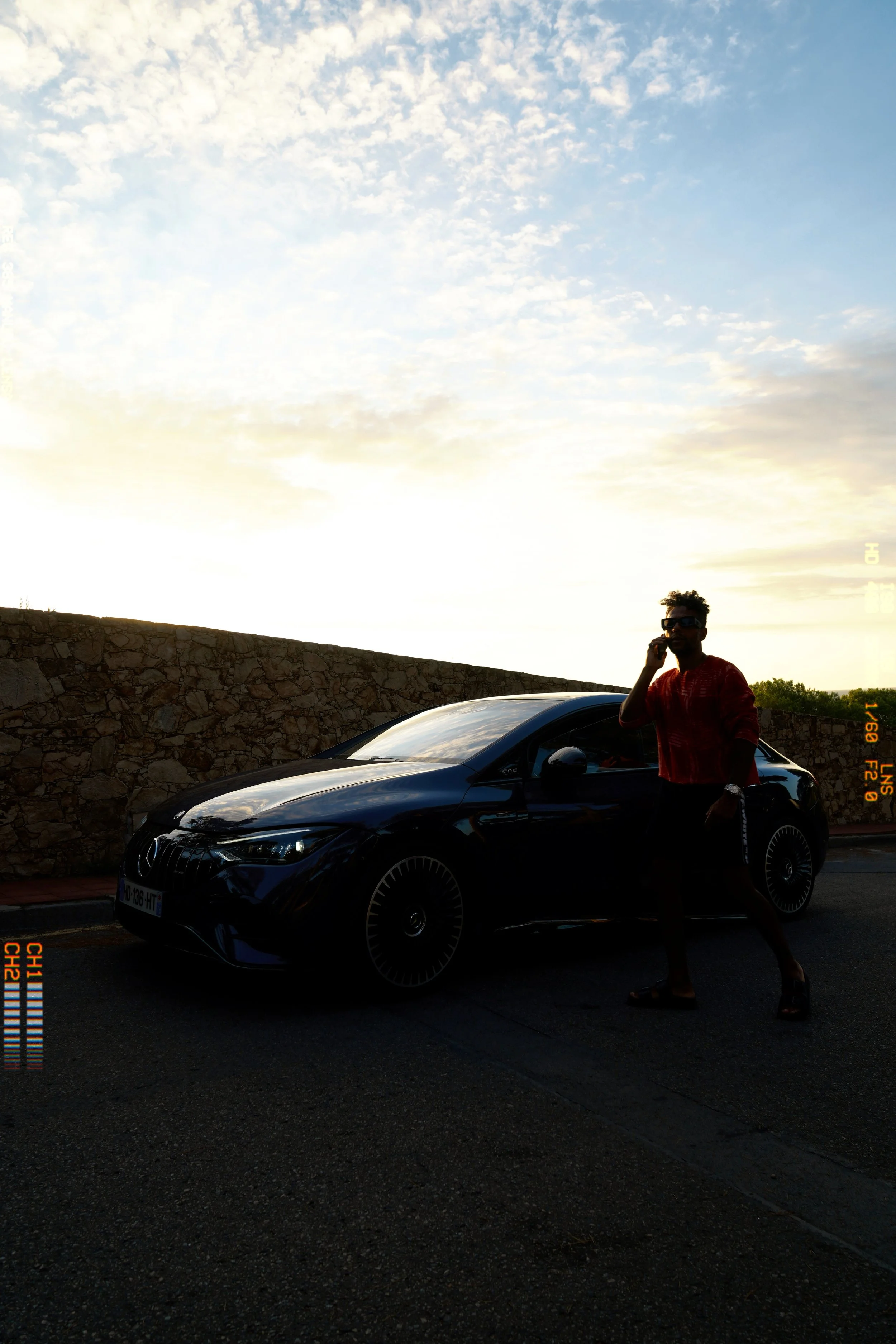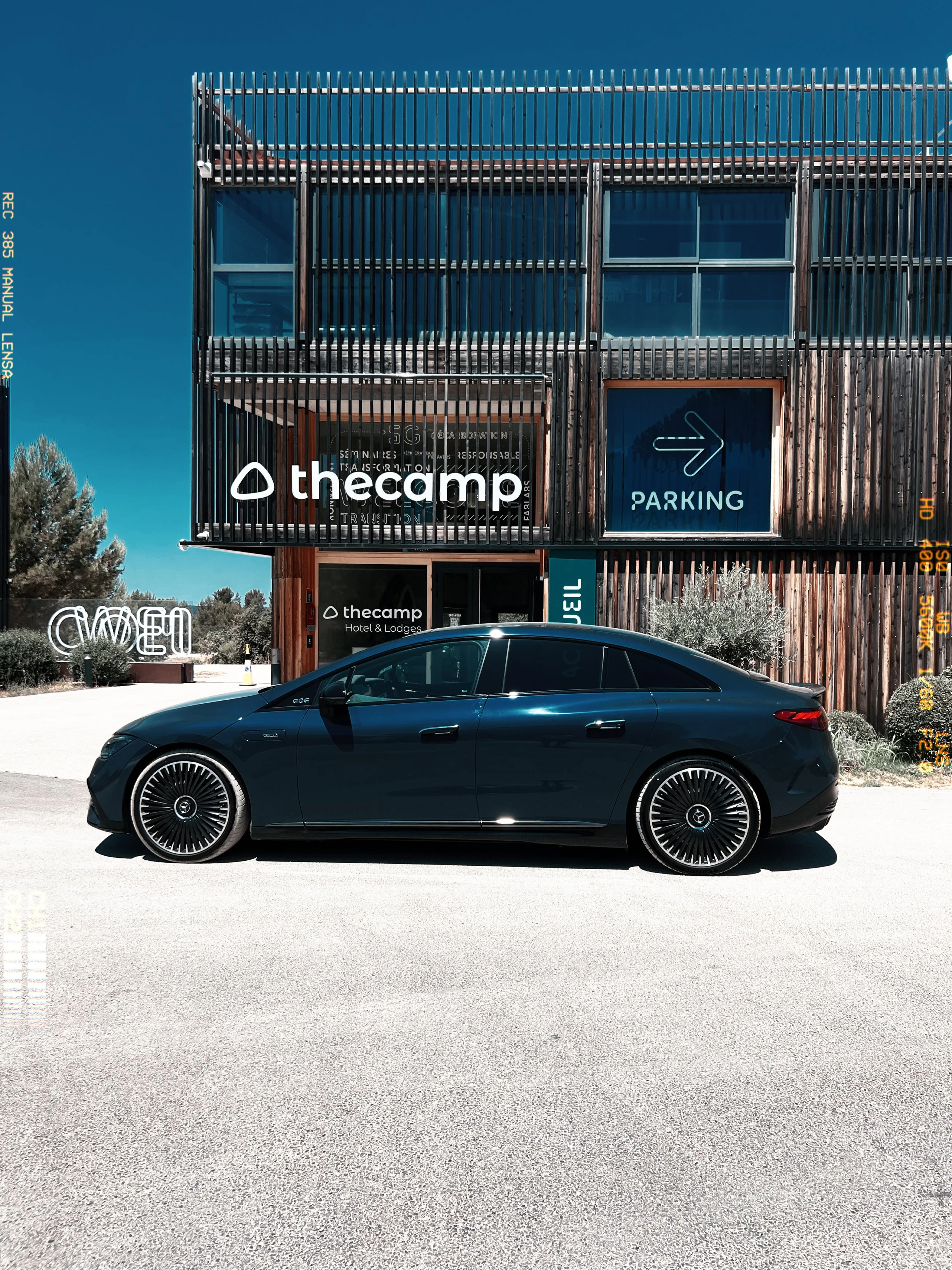 At rest, the car feels suspended. As if it’s waiting less for departure than for alignment. Around us: pine trees, raw concrete, still heat. Inside: calm. Almost too much. We don’t really start. We glide. Sound disappears — and with it, a certain idea of motion. It’s no longer about moving forward. It’s about floating.