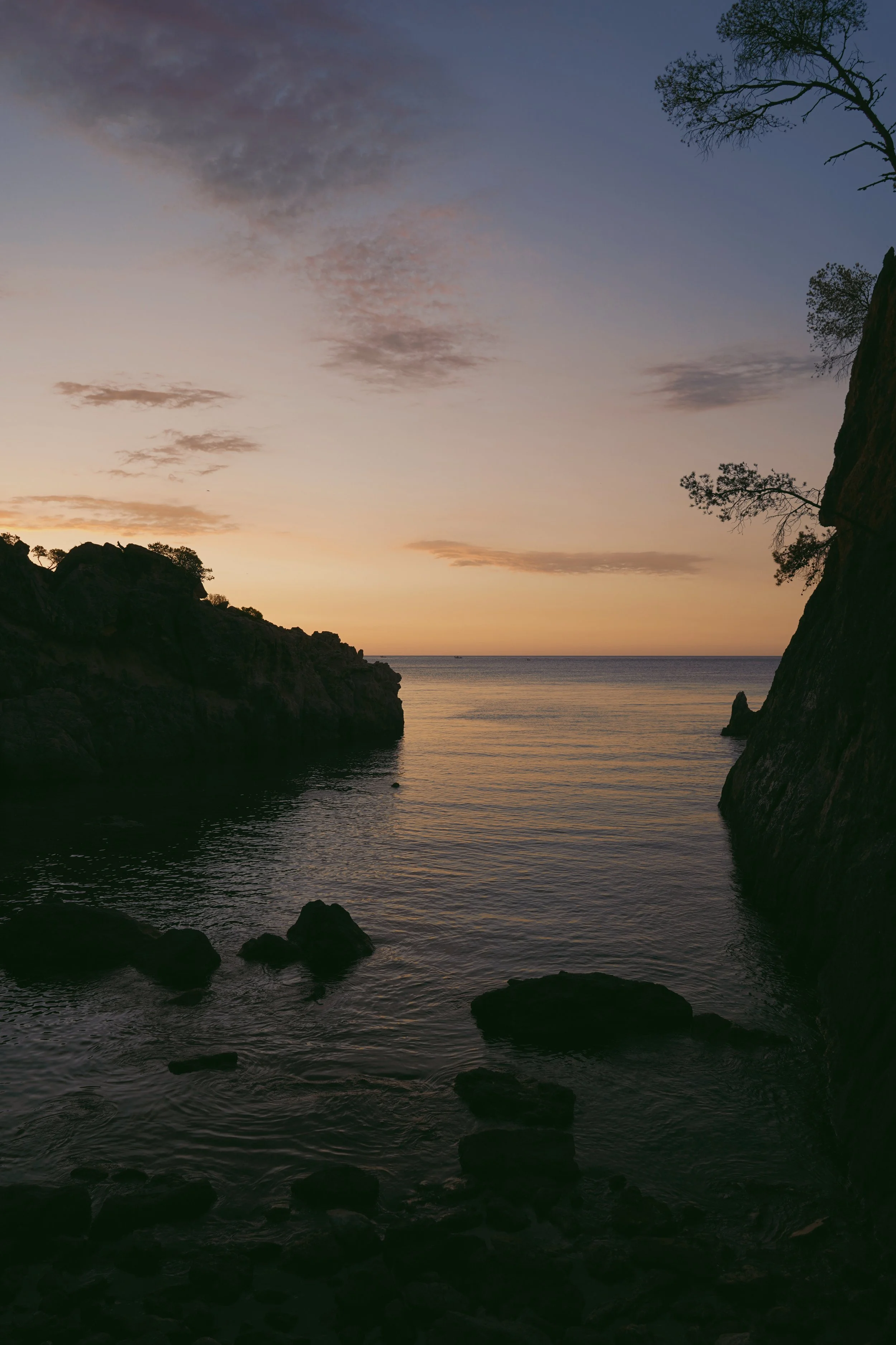 The road folds into itself, hesitates, then drops toward the sea. At El Golfet, everything is mineral. Rock, salt, a hard light carving every edge with precision. We stop, facing the horizon. The world feels defined. In this electric silence, the Mediterranean shifts. It’s no longer a landscape. It becomes a surface. The car almost disappears. Or rather — it integrates. Another line within the composition.
