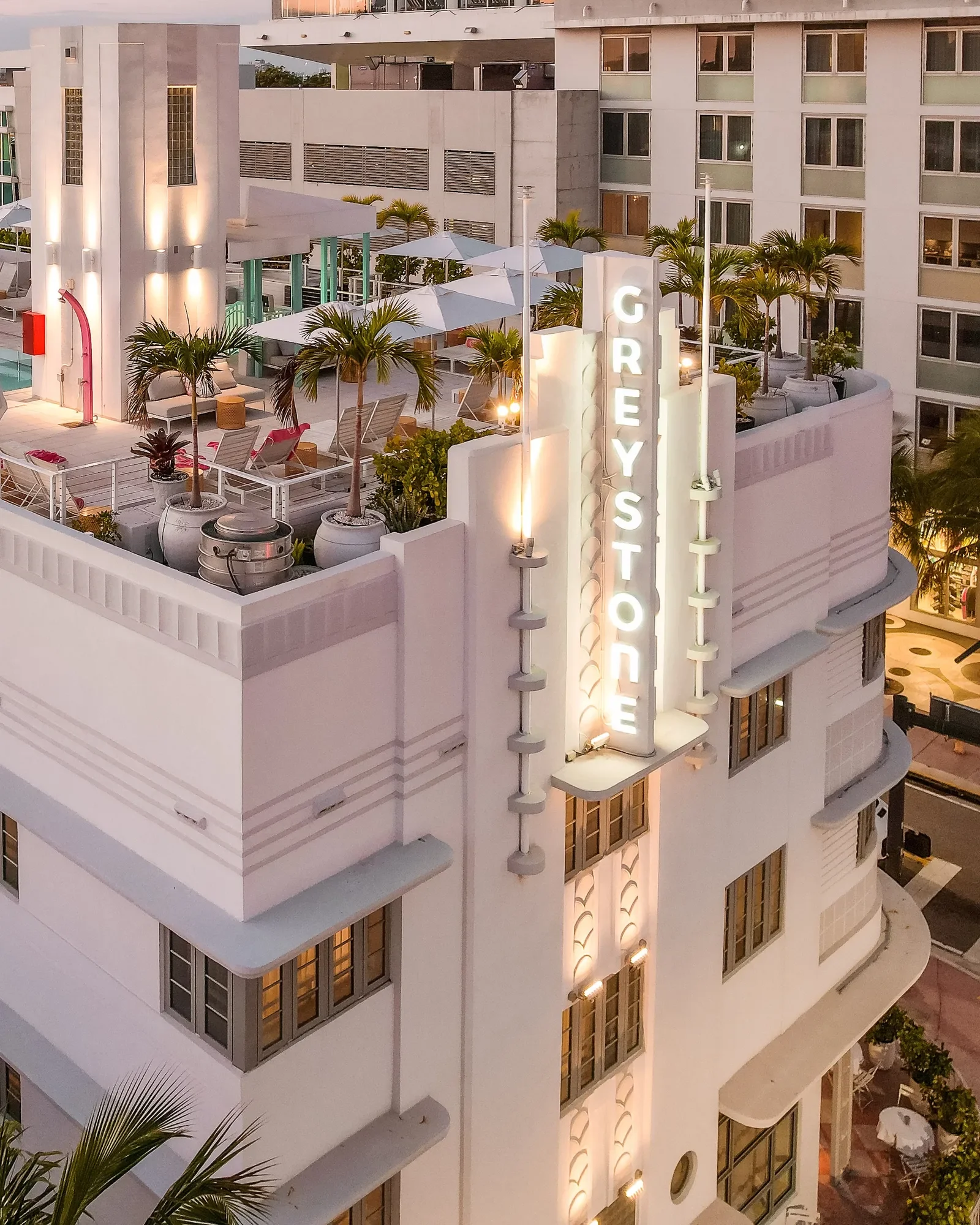 A refined art deco restoration with soft hues and lush greenery, Greystone’s minimalist calm offers a peaceful haven from Collins Avenue’s buzz. Its serene rooms and intimate cocktail bar balance style and simplicity.