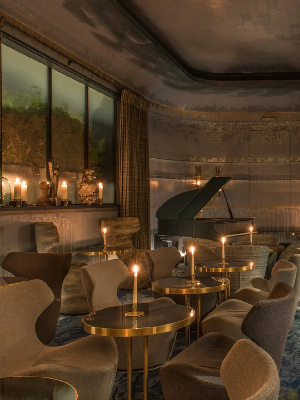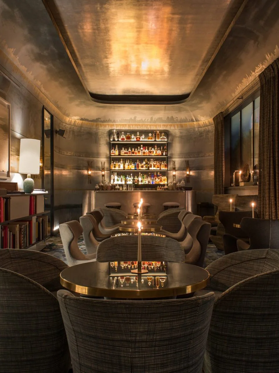 Imaginé par Jean-Louis Deniot, le Nolinski détourne les codes classiques avec subtilité. Miroirs, laiton poli, marbre vert et fresques célestes composent un décor riche mais parfaitement équilibré. Entre influences Art déco et touches plus éclectiques, chaque détail semble pensé pour créer une harmonie singulière, à la fois parisienne et légèrement ailleurs.