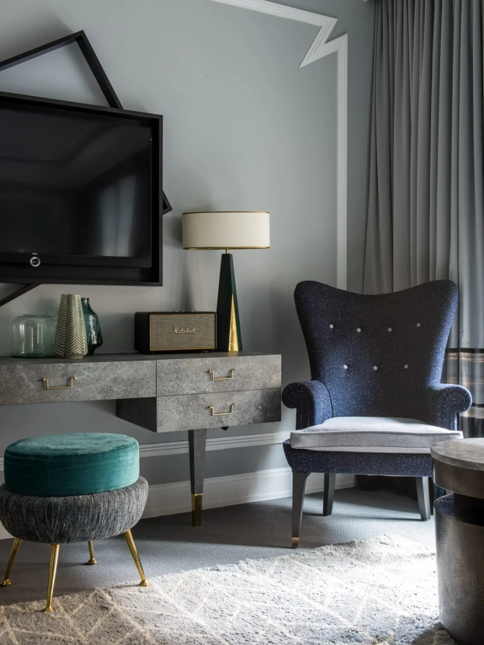 Les chambres prolongent cette sensation d’intimité, avec leurs textiles enveloppants, tapis tissés à la main et mobilier sur mesure. La Hemingway Suite, baignée de lumière et ouverte sur un balcon, évoque un appartement parisien suspendu, à la fois élégant et profondément personnel.
